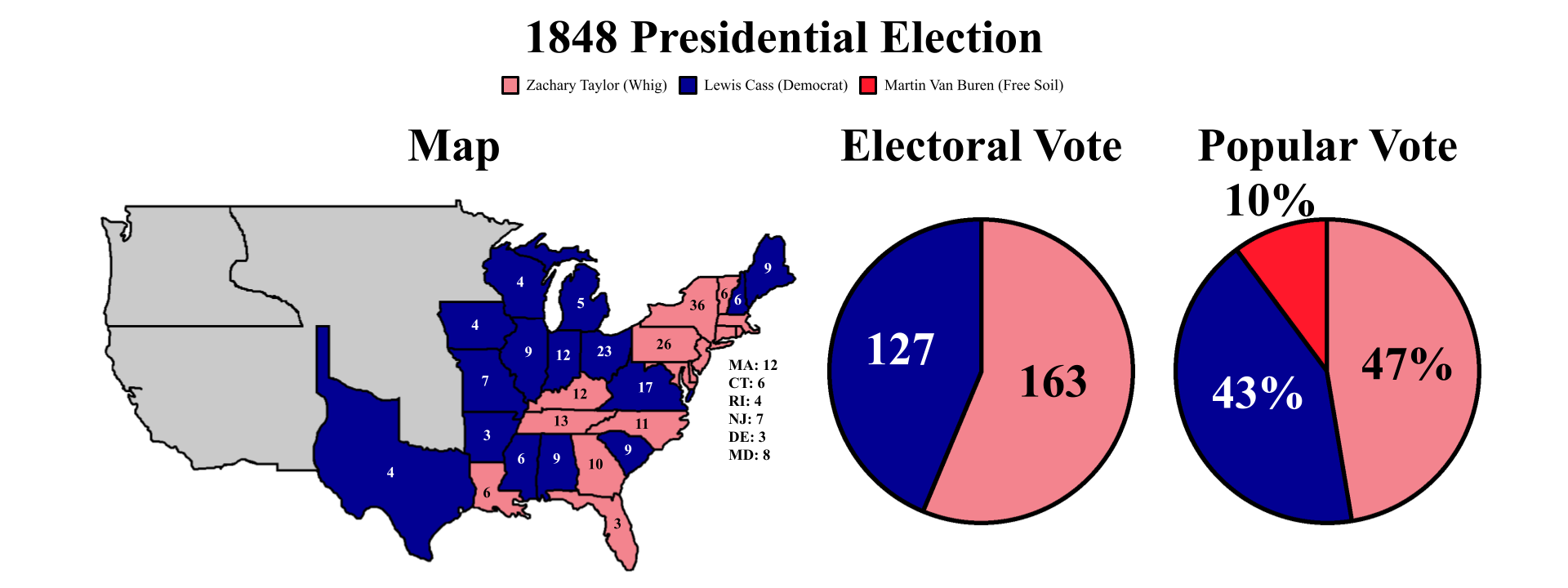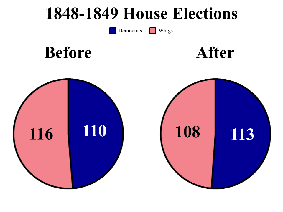 Taylor narrowly won the election, and without New York, he would have lost. In House elections, the Whigs ended up being on roughly equal footing with the Democrats. In the Senate, the Democrats had a clear majority. With Taylor not being much of a Whig and with the Whigs not having a majority in congress, it was not the best outcome for them, but not the worst either.