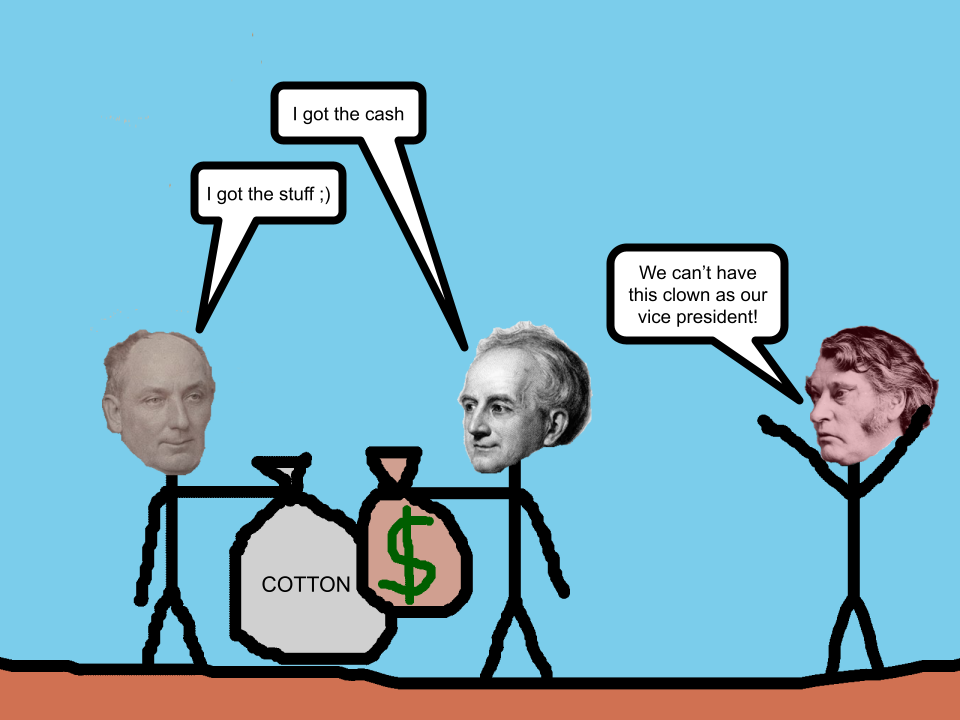 Unfortunately, this was very alienating to the Southern wing of the party, since antislavery sentiment was never gonna be popular in the South. The debate over slavery ended up splitting the Whigs loosely into two groups. On the one hand, people like John Quincy Adams and Charles Sumner, both staunchly antislavery, started calling themselves the "Conscience Whigs". Meanwhile, they called Whigs who were sympathetic to slavery the "Cotton Whigs", which may be a reference to the fact that Southern cotton was frequently harvested with the use of slave labor.