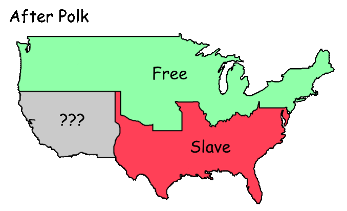 All this rhetoric about slavery wasn't for nothing. It was an extremely important issue in the upcoming election. In the Mexican-American War, the United States won a huge amount of new territory, and this created an awkward question: should this new land allow or prohibit slavery?