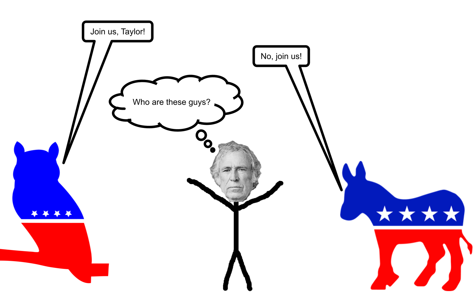 The thing is, Taylor himself was not a very political person. He didn't identify with either party and had never even voted in a presidential election. He said that if he accepted a nomination, it would only be under the condition that he did not have to follow any party doctrine. Three months later, he revealed himself as a Whig, but he still didn't want to be restricted by partisan politics.