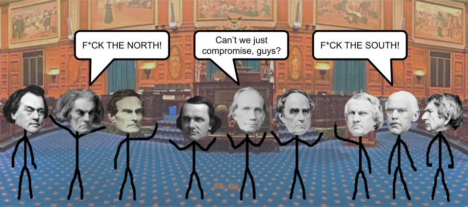 Meanwhile, the Mexican-American War had ended a year prior, and now the United States had a ton of new land to settle, including California and New Mexico. It wasn't long before gold was discovered in California, leading to a massive wave of migration over there. But the area had little government, and congress wanted it to be organized and added as a state as soon as possible. There was only one problem: slavery. California wanted to be admitted as a free state, but many Southerners took serious issue with this.