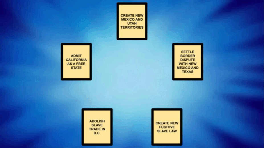 Because of this, before the Nationals would support Taylor's plan, they needed some compromises. Figures like Henry Foote, John Bell, and Henry Clay all came up with their own ideas. It was Clay's plan that seemed to have the most potential. It was made up of 5 points: