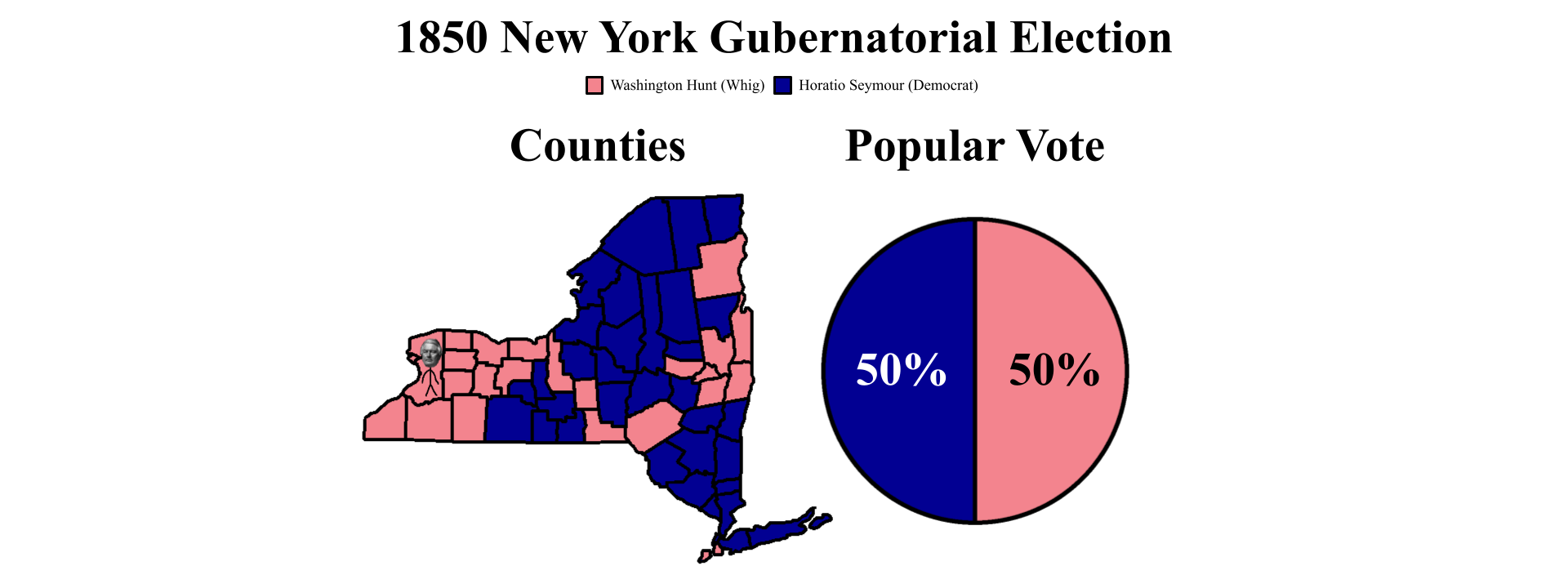 In the end, Hunt won the gubernatorial election by just a few hundred votes. Many Whig merchants voted against him, fearing that he was too associated with Seward. This was seen as a blow to Seward, and it seemed likely that Weed and Seward would quiet down about slavery. With his party held together, Fillmore was satisfied.